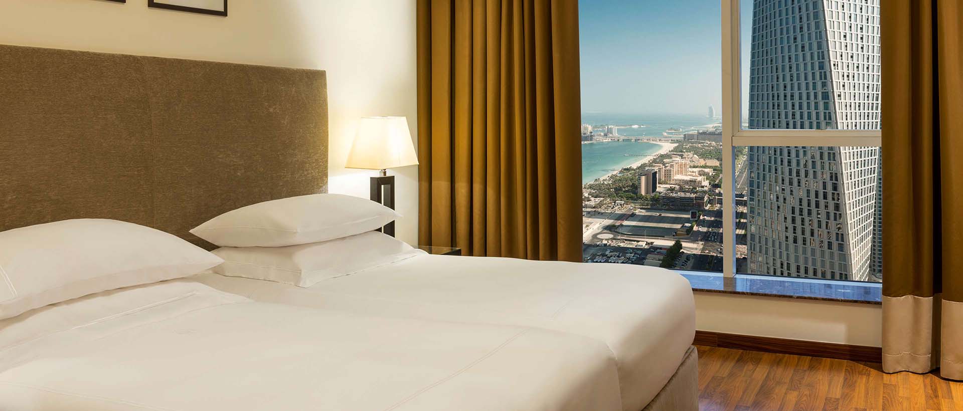 Свежие цветы и тёплые кремовые и шоколадные тона в оформлении располагают к себе гостей. Расположенные в первой башне номера открывают непревзойденные виды на Dubai Marina.